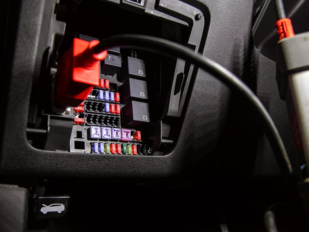 Jeśli na tablicy rozdzielczej świeci się check engine lub inne kontrolki ostrzegawcze, diagnostyka komputerowa pozwala odczytać dokładny kod błędu i określić źródło
